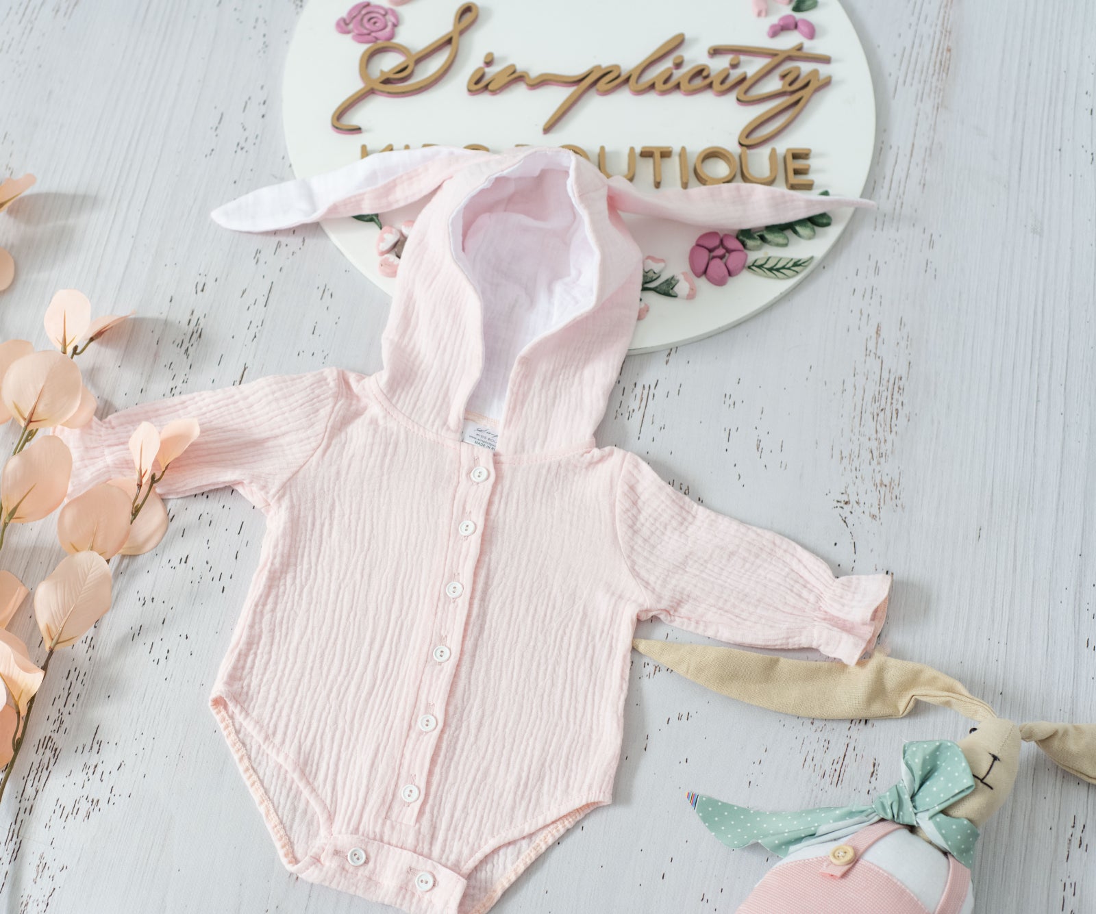 Body Bunny este confecționat din muselina 100% bumbac Certificat Standard 100 by OEKO-TEX.