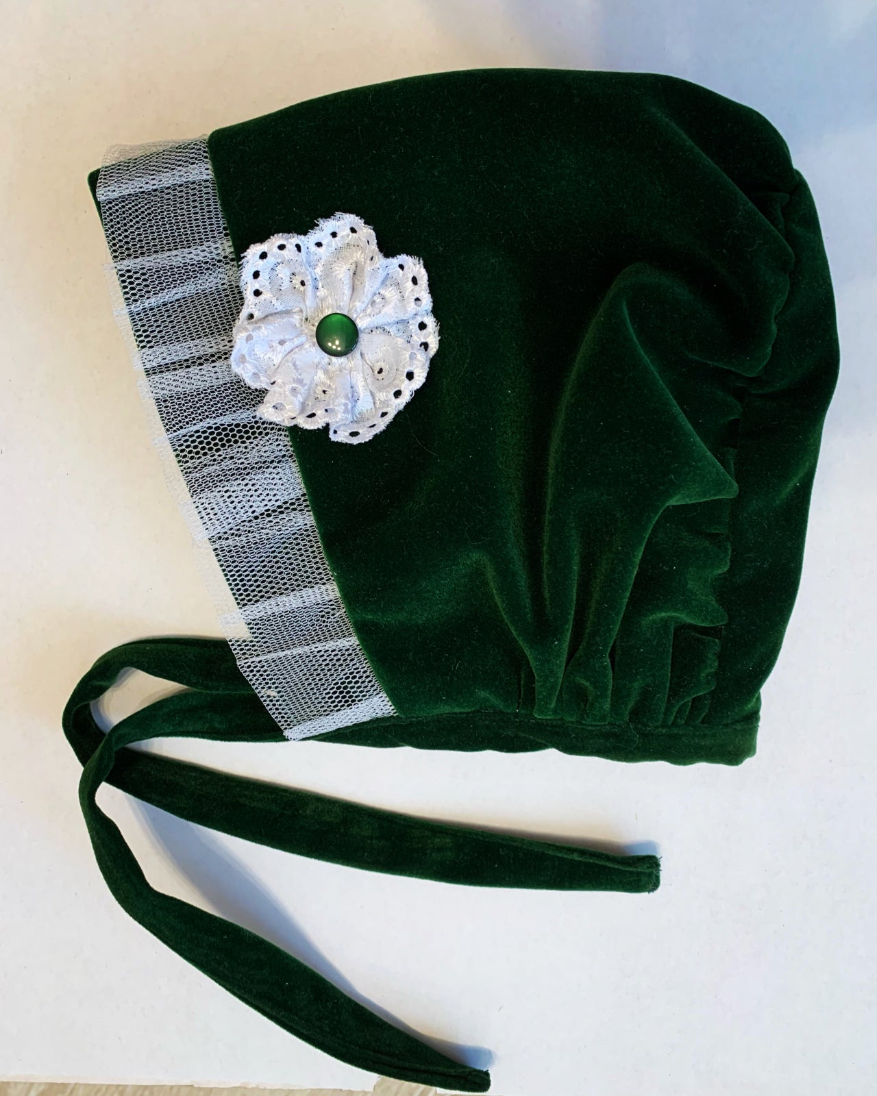 Bonetica este realizată din catifea și căptușită cu bumbac 100%. Se asortează foarte bine cu rochița Cherry. Bonetica poate fi făcută și pe alte culori.