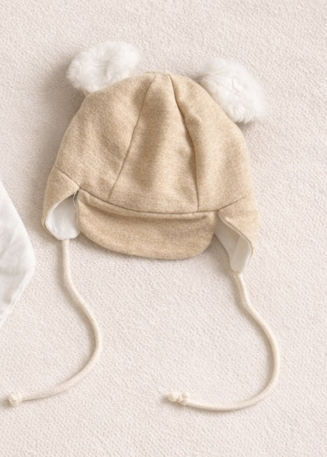 Căciulita Bear este confecționată din stofă catifelată cu blanita moale pe interior 100% bumbac