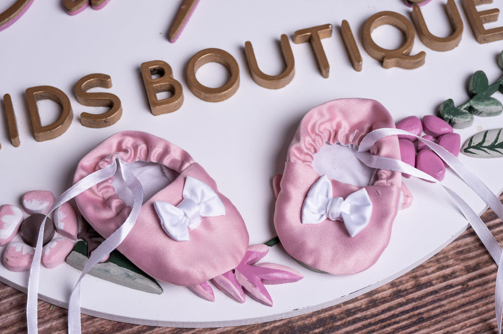 Papucei de bebeluși realizați din tafta roz căptușiți cu bumbac.