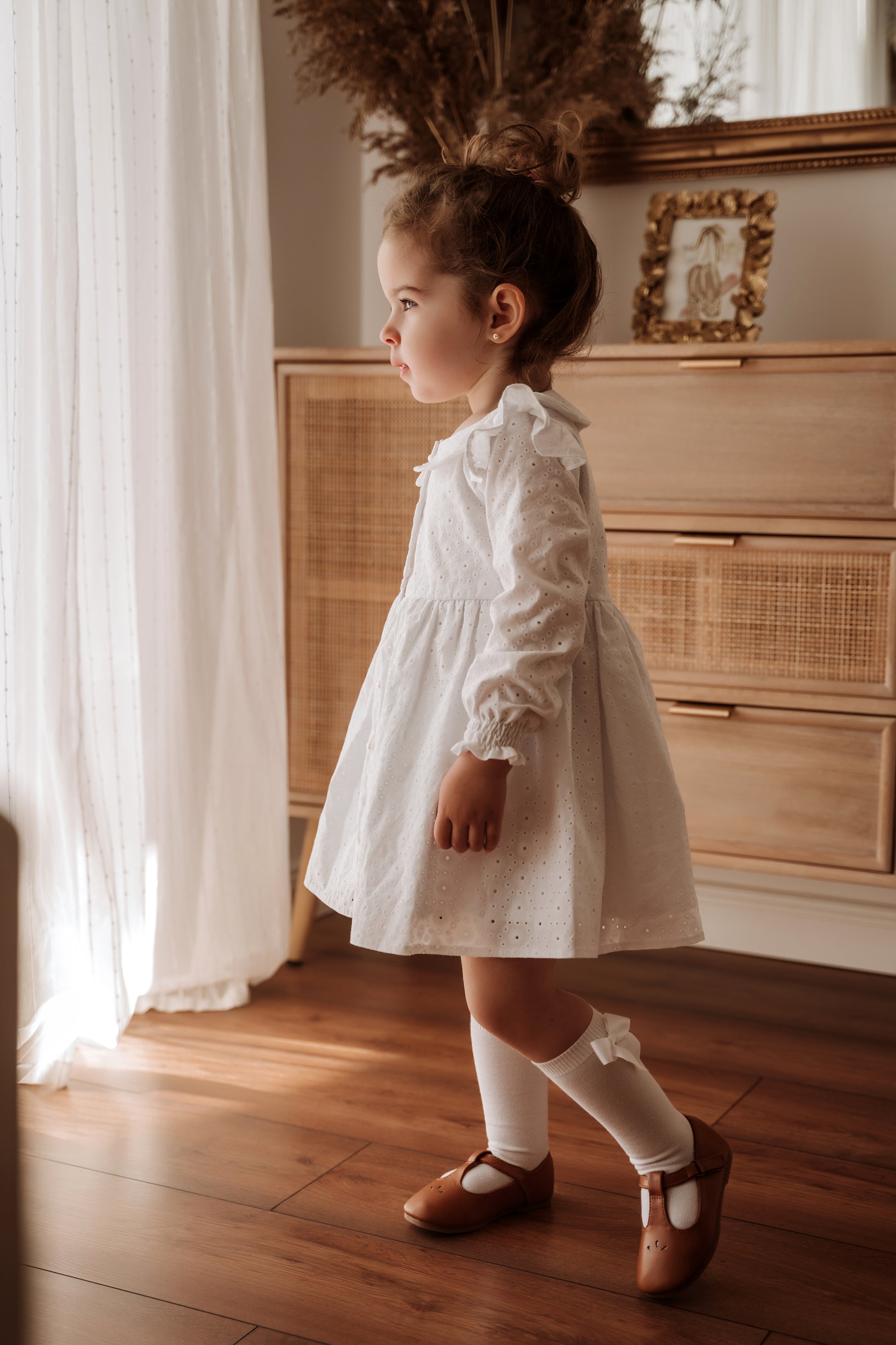 Rochie confecționată din 100% bumbac cu broderie englezească.