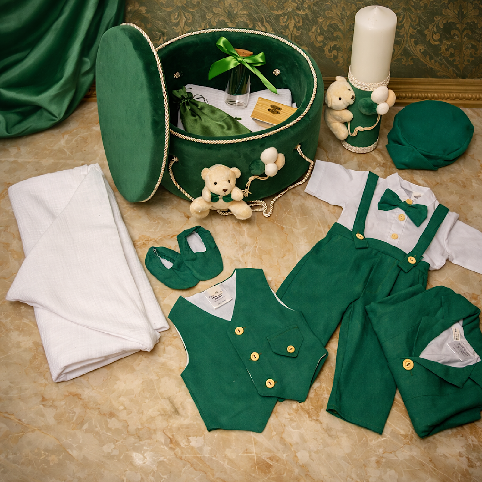 Setul contine hainute și trusou pentru botez.