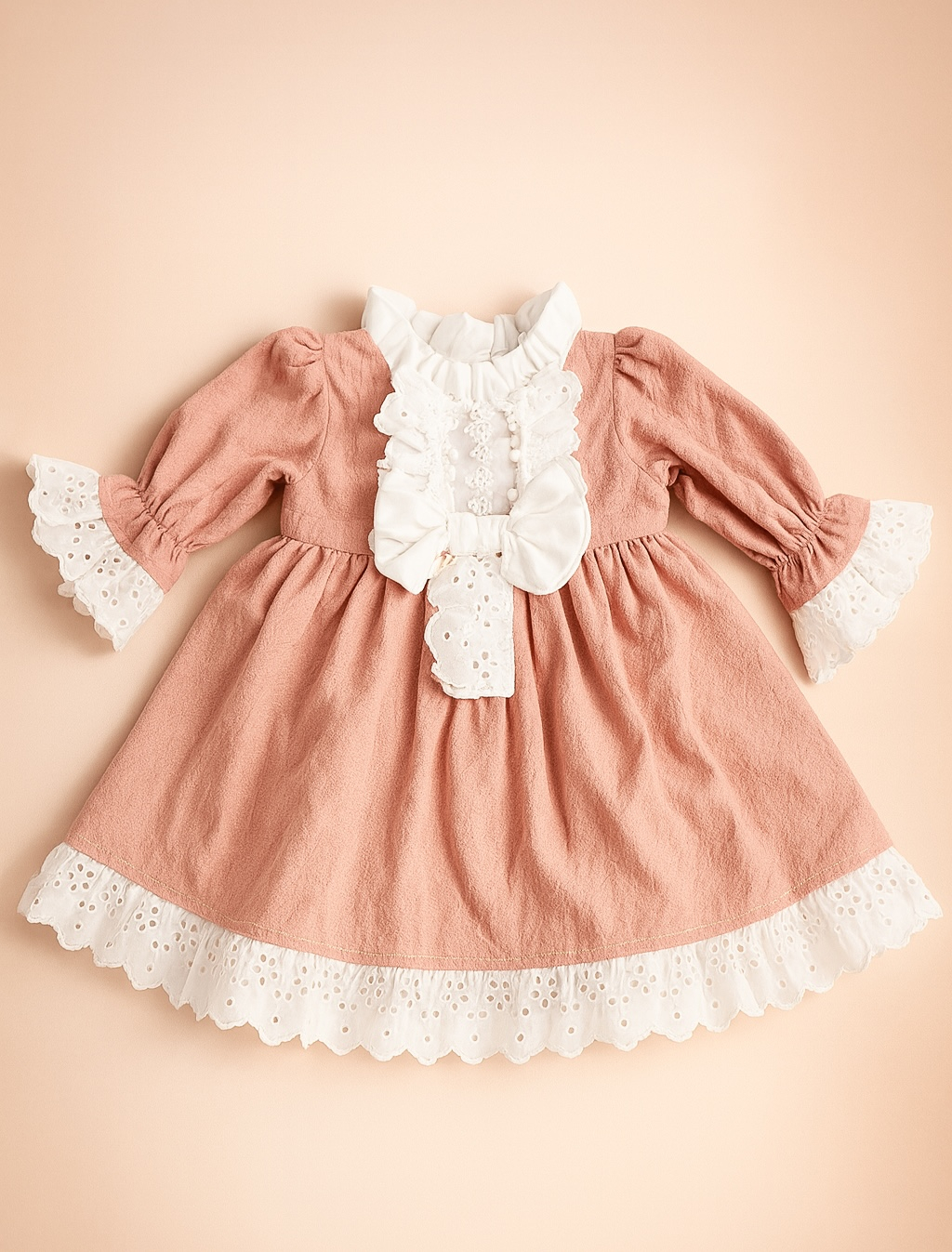 Este accesorizata de o danteluta fina la terminații, un guleras creț pe gat și o fundița in partea din fata.
