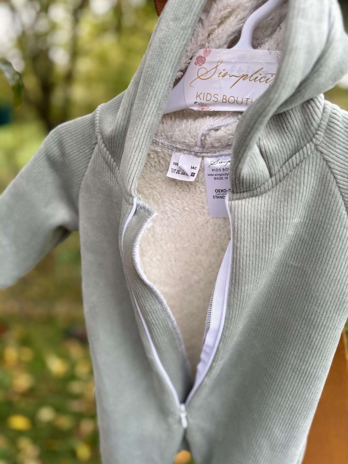 Salopeta Bear este confecționată dintr-un material grosut si pufos, cu blanita la interior și raiat catifelat la exterior.
