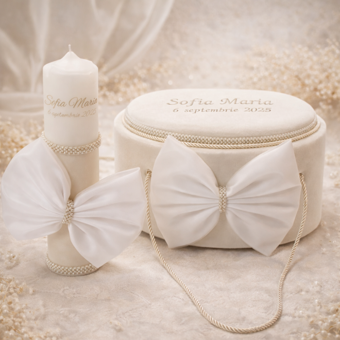 Trusou botez premium alb cu funda mare