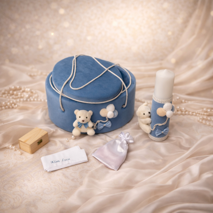 Trusou botez Luxury albastru cu ursulet